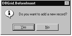 [ic:ccc]vbInformation + vbYesNo, "DBGrid.BeforeInsert")