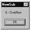 Save the program and run it to see the results. When you first click the command button, you see the error message that announces the overflow error. Notice that the title of the message box indicates that the error is being reported by the NewSub module. (See Figure 14.2.)
