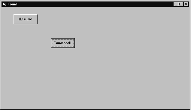 Let's modify the ERROR01 project to add an error handler that uses the Resume keyword. Add an additional button to the form. Set the caption property to Resume. Set the Name property to cmdResume. Now add the code in Listing 14.4 behind the new button.