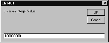 Save and run the project. When you press the Resume button, you are prompted to enter an integer value (see Figure 14.5).
