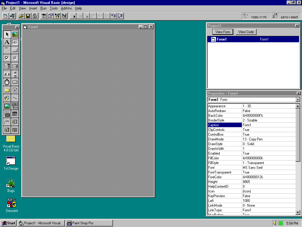 Figure 2.1. The Visual Basic 4.0 interactive development environment (IDE).