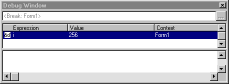 There are three major sections to the Break window. Each of these sections of the Debug Window is described in the following sections.