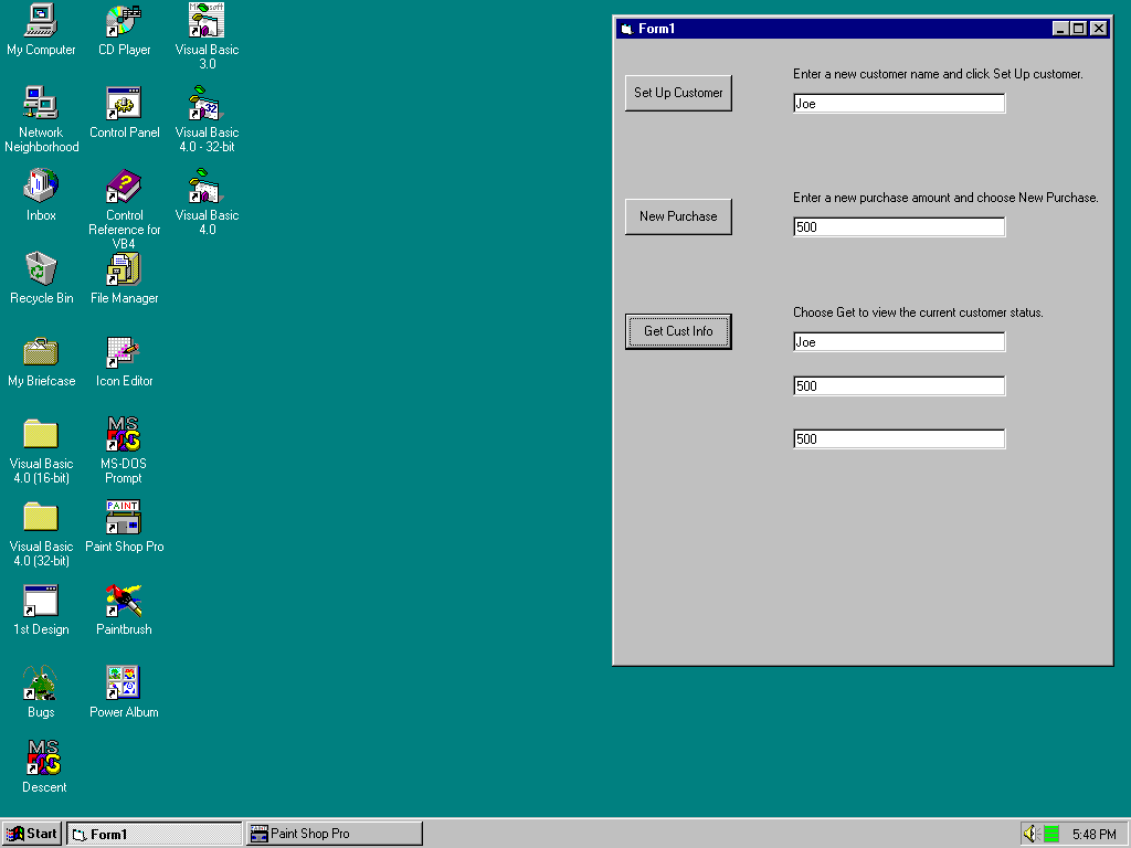 This chapter outlined many of the new features provided in Visual Basic 4.0. In particular, the following items were covered: