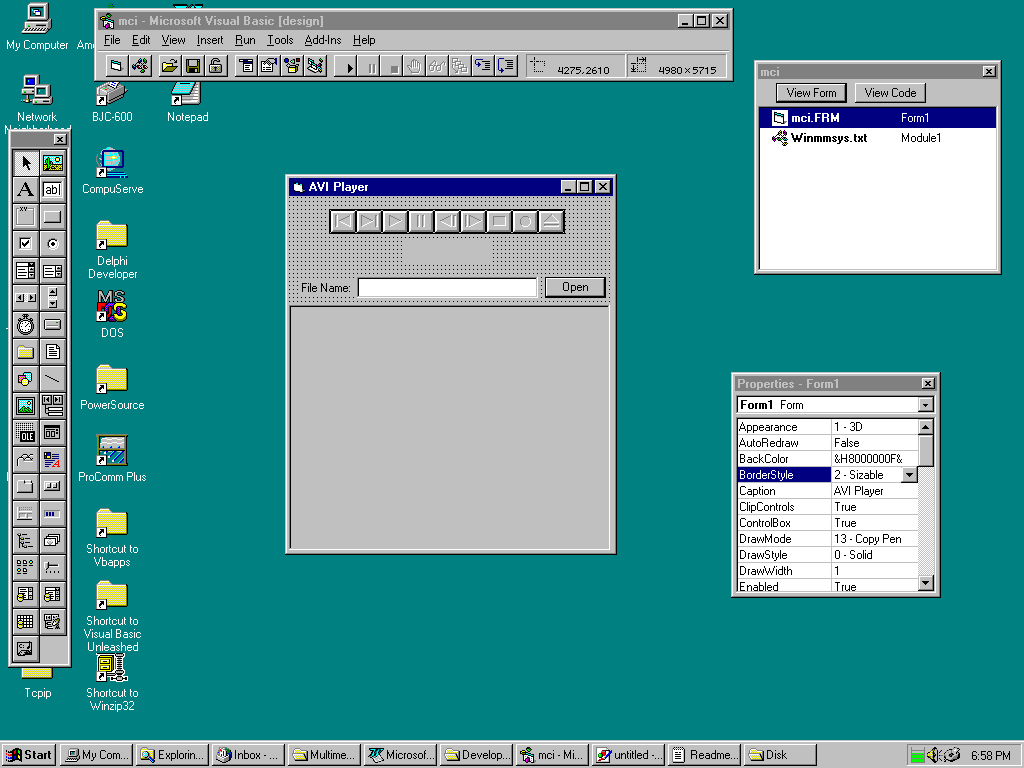 On to bigger and better players. The MCI control can do more than make your sound card chirp. It actually can play back video for your viewing pleasure. The first question you no doubt will be asking is, "Where, exactly, does it play this