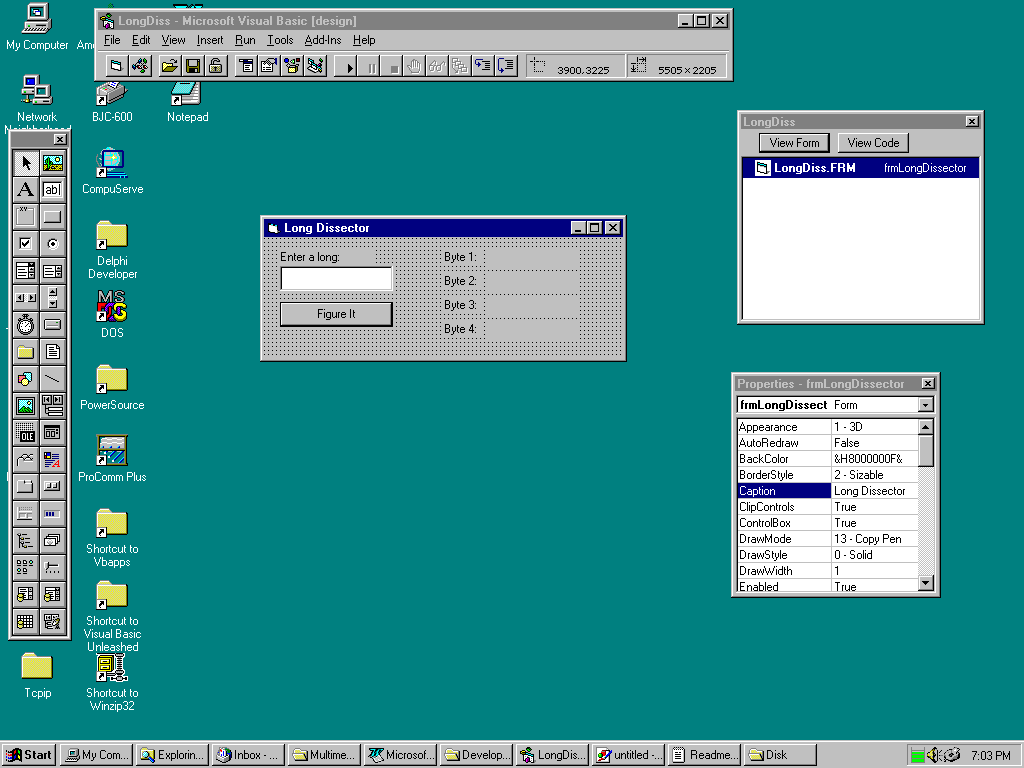 On the CD that comes with this book, you will find this function as part of an application called LongDissector. The form looks like Figure 9.8.