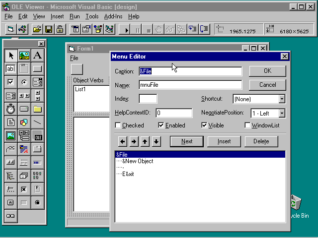 this has expanded the collection of tools available in the product. A working understanding of objects and OLE 2.x is required in order to get the greatest value from the changes in VB 4.0.