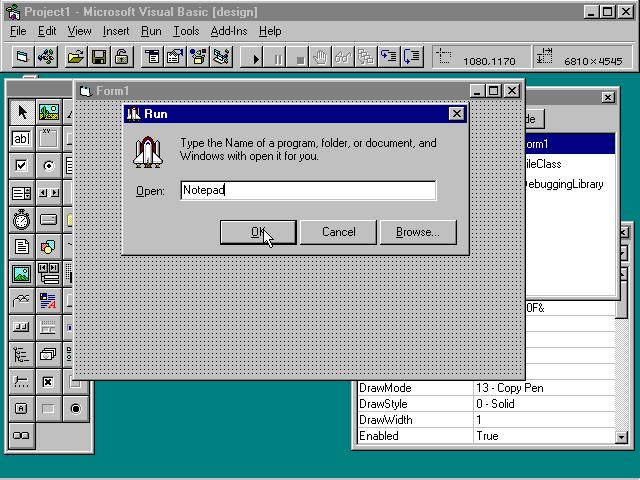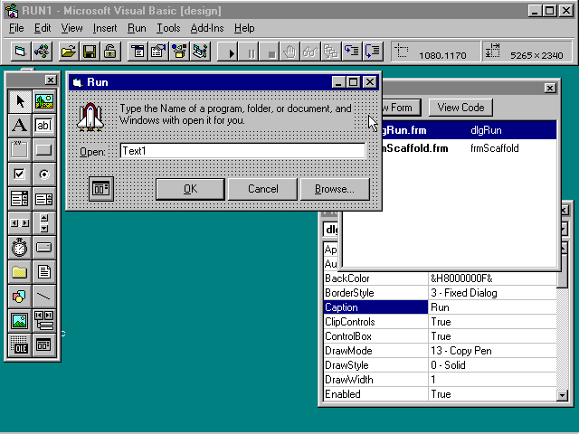 Figure 16.14. The Run dialog running in the Visual Basic development environment.
