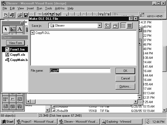 To register your OLE server on the same computer you created it on, choose File | Make OLE DLL file. Enter an appropriate name and the system will register the In Process server in the system registry as shown in Figure 19.10.