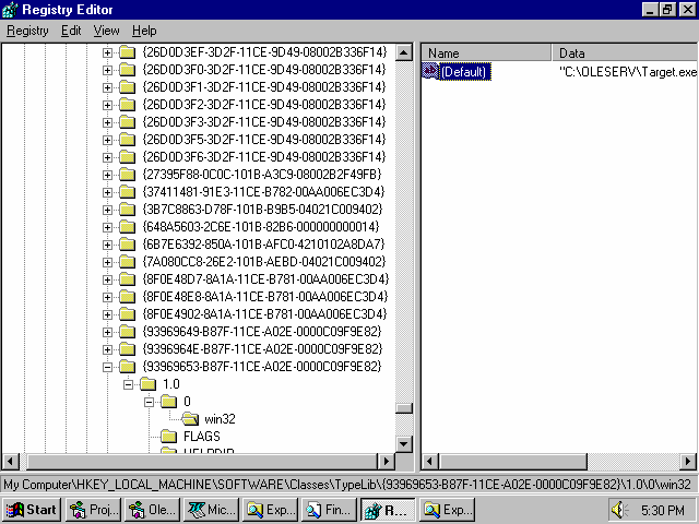 Figure 19.11 shows how the executable file named TARGET.EXE would look in the registry.