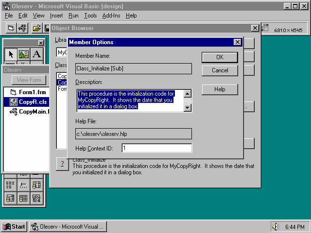 In order to create a complete OLE server, you should add a help file to assist end users and other developers that want to reuse your code. (If the code you are contemplating for an OLE server cannot be reused, you should consider whether you need to