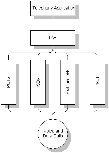 Figure 26.2. TAPI allows transparent, medium-independent communications over analog POTS as well as any of the existing digital networks available.