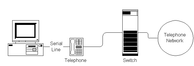 telephone network. TAPI operations invoked at any of the client computers are forwarded over the LAN to the host, which uses a third-party switch-to-host link protocol to implement the client's call-control requests. The switch provides the interface to