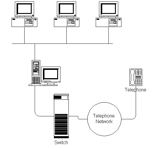 the telephone network, and the LAN server provides the interface for all the PC client operations.