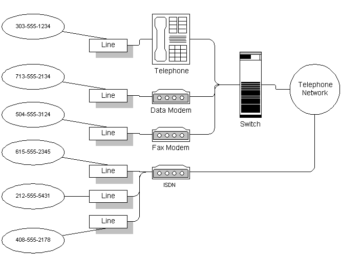 line has only one address. However, it's not unusual for a line to have several addresses as with ISDN (see Figure 26.11).