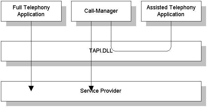 also elect to become aware of one another if necessary so that they can cooperate and communicate with one another through TAPI.DLL. The service providers are not concerned with communication between multiple applications because they think only one