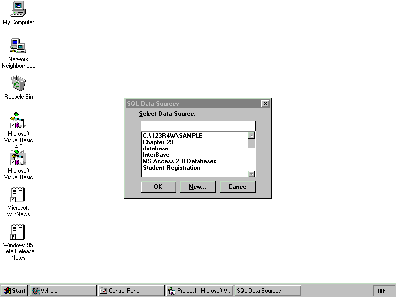 Before you can access an ODBC database, you first must set up the database using the ODBC application shipped as part of Visual Basic. You can find this application in the Windows Control Panel or in the Visual Basic program group.