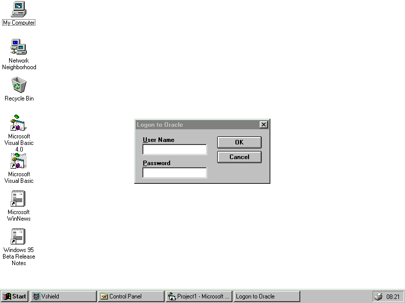 Listing 29.3 opens the BIBLIO database and associates it to the data source type ORACLE. Because the User ID and the password items have been omitted, a database Logon dialog box is displayed (see Figure 29.2). If the user chooses the Cancel option, a