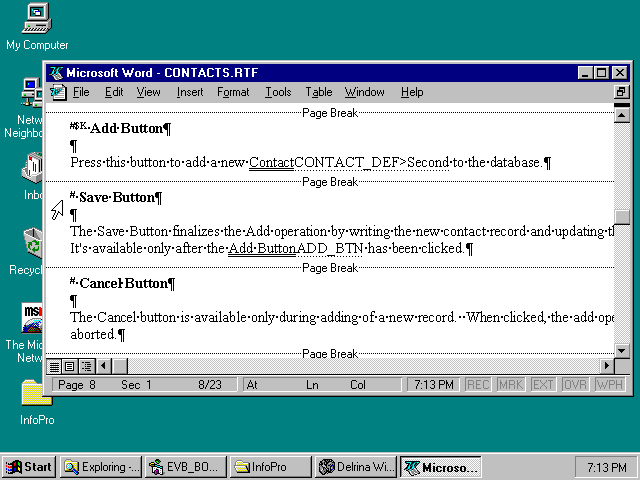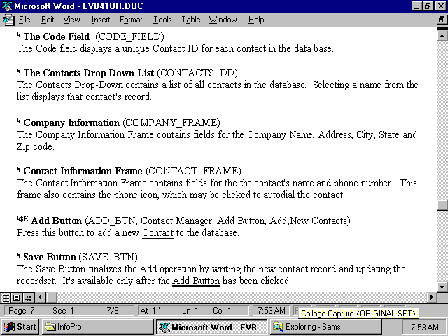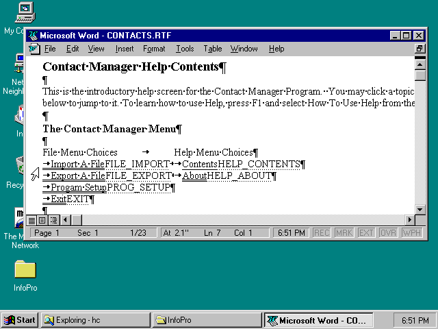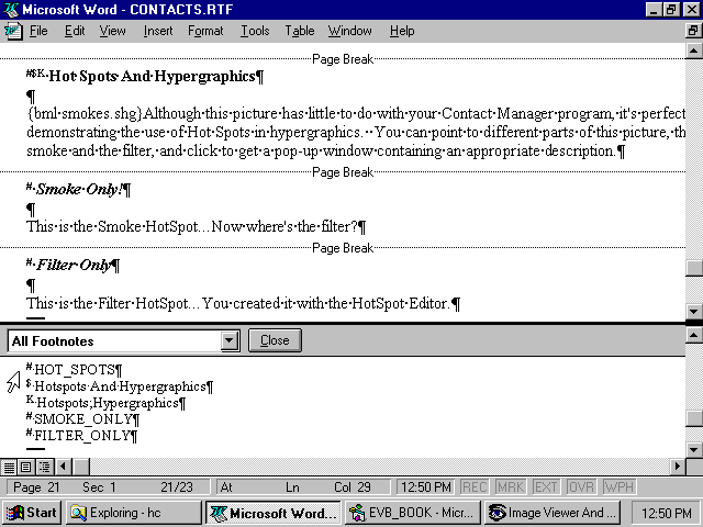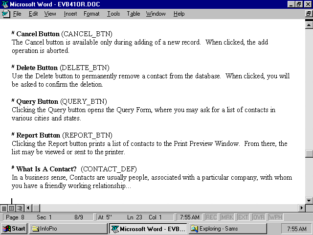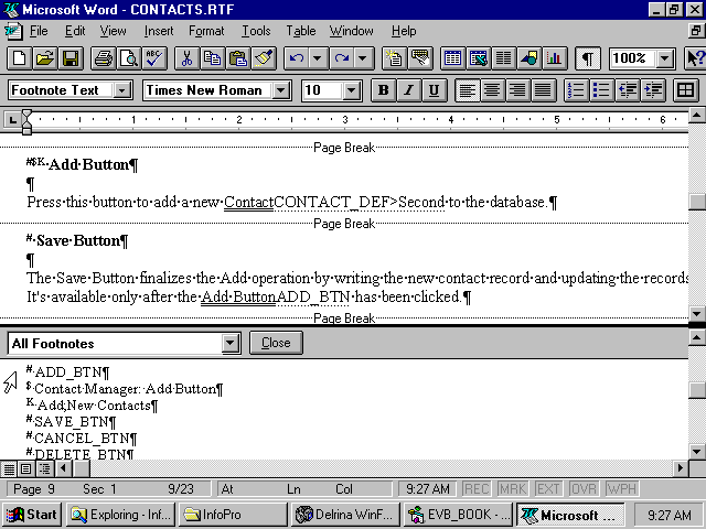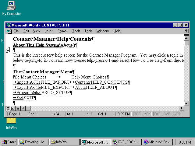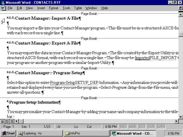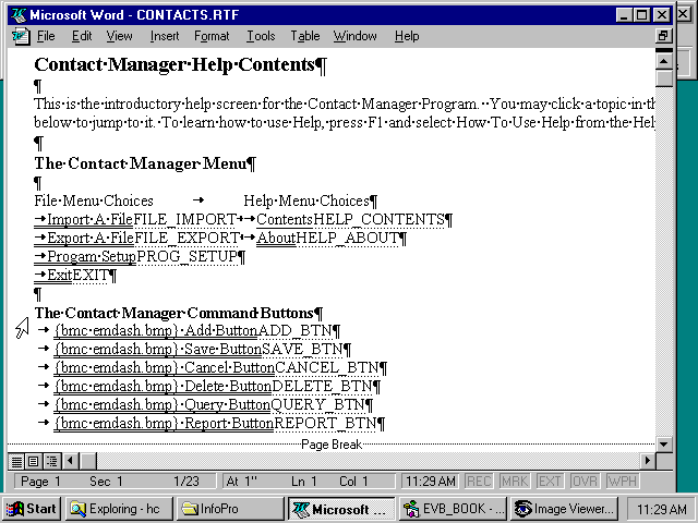 Okay, that's it for the first version of your Help Text file (you'll add much more to this file over the rest of this chapter). If you're working along with this chapter, you should save the file as Contacts.RTF (again, it must be saved in the RTF