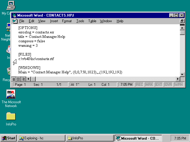 That's it for Step 2. Save the file as Contacts.Hpj. Now it's compile time.