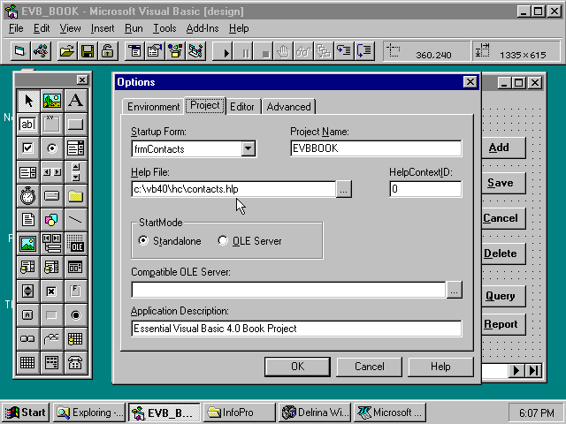 The fourth and final step in setting up your own Custom Help System is to attach Contacts.HLP to your Visual Basic application, in this case the Contact Manager program.