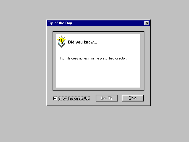 The Tip of the Day component adds a Tip of the Day dialog (Figure 6.7) to your project. The dialog is added in the form of a header file (TipDlg.h), implementation file (TipDlg.cpp), and dialog template IDD_TIP. The component also modifies the InitInstance function of your application class to invoke the Tip of the Day dialog when the application is started. The Help menu is also updated to provide a Tip of the Day command.