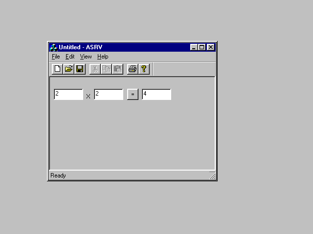 Figure 32.1 shows the user interface of this application, ASRV. To use this application, first enter the two multiplicands in the two edit fields on the left side, then click on the = button to calculate the result.