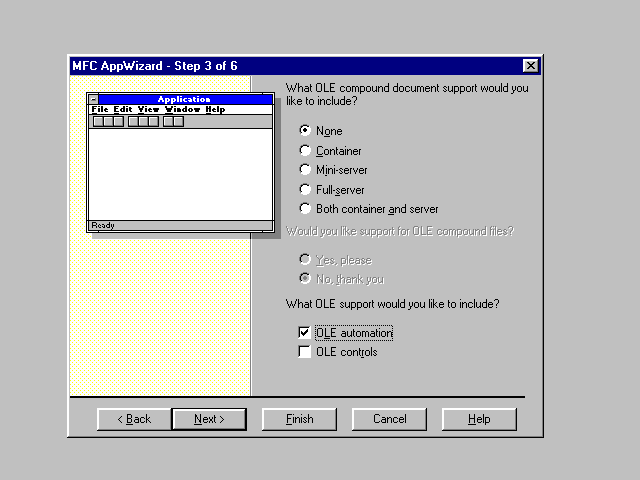 Support for OLE automation is specified in Step 3 of AppWizard (Figure 32.2). Make sure the OLE automation check box is marked before proceeding from this step.