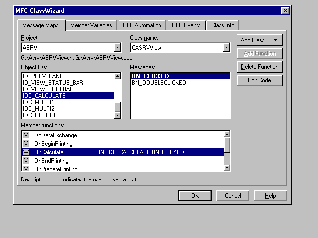 Second, the ClassWizard created the method function Calculate; as there is no need for this and a separate DoCalculate, these two functions can be consolidated into one and we can get rid of DoCalculate.