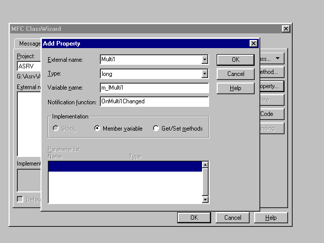 Next, use the ClassWizard to add another property, Multi2, in a similar fashion.