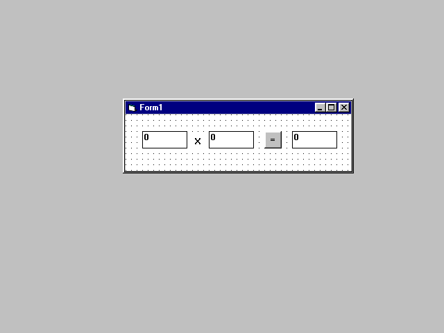 The two edit fields on the left side should be called IDC_MULTI1 and IDC_MULTI2, respectively. The edit field on the right-hand side should be called IDC_RESULT. You may consider making this field a read-only field. The button, with a caption set to a single equal sign, should be called IDC_CALCULATE. You may consider setting the Default property for this button to enable using the Enter key to perform the calculation.