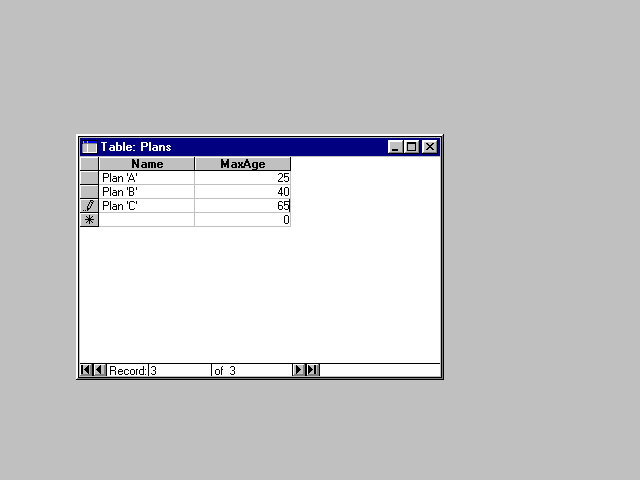 Figure 34.5 shows the four records I added to Employees. Figure 34.6 shows the three records I added to the Plans table.