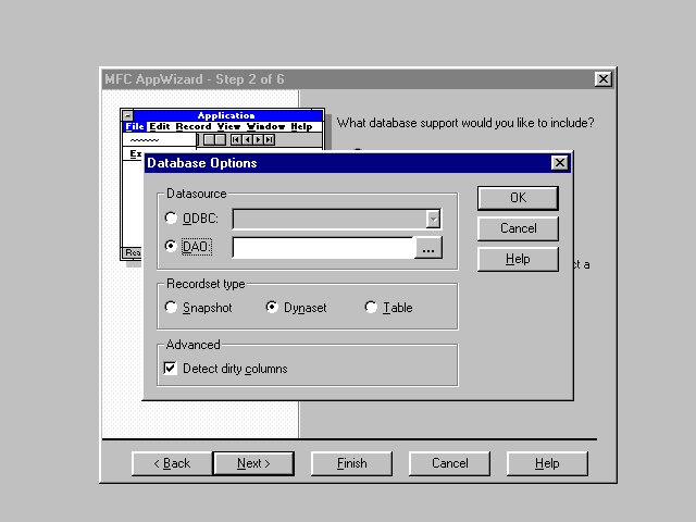 Building a DAO application is quite simple. First, if it does not exist yet, we must create a data source. For the application demonstrated here, the data source is a simple Access database of two tables. Next, the skeleton application must be created using AppWizard; and finally, we must customize this application as appropriate.