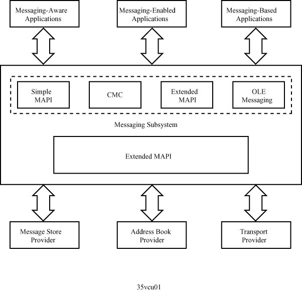 Why several APIs? The reasons are partly historical. First, Microsoft released the specifications for Simple MAPI, which included about a dozen fundamental calls that enabled applications to use messaging. The Common Messaging Calls (CMC)API has been developed as a platform-independent replacement for Simple MAPI. It also contains about 10 fundamental calls that provide access to basic messaging services. In contrast, Extended MAPI is a large, complex, evolving specification that not only provides an application programming interface for client applications but for service providers as well. OLE Messaging, an API specifically developed for Visual Basic and Visual C++ applications, uses the OLE automation architecture.
