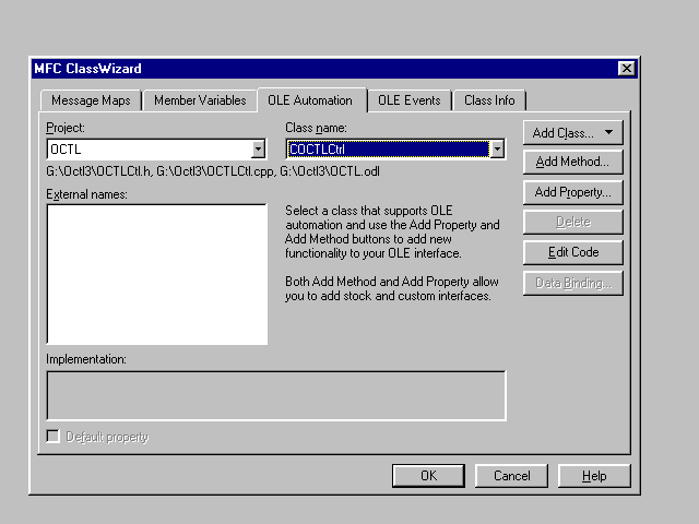 Although we have not explicitly added any methods to the OCTL control, we have, in fact, added three methods nevertheless; these are the get/set methods that we used for our two properties.