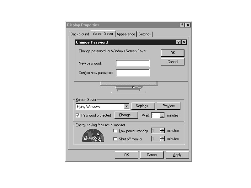 Using the Display Properties box, you can add a password to any of the Windows 95